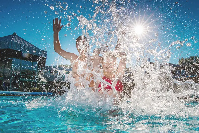 In den Sommermonaten lädt unser Nichtschwimmerbecken im Solegarten mit einer Breitwasserrutsche und Wasserspritzkanonen zum Badespaß für die kleineren Gäste ein.