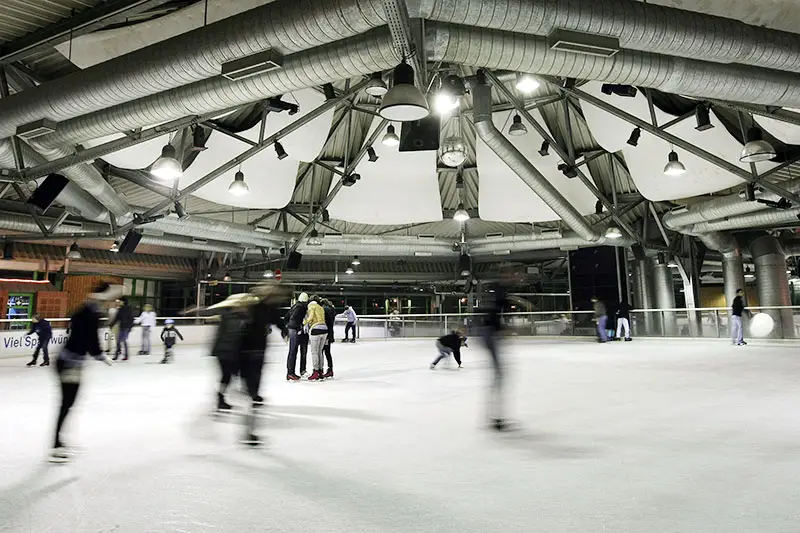 Zwei höhenversetzte Eisflächen sind mit Auf- und Abfahrrampen verbunden und ermöglichen ein ganz neues Eislauferlebnis. Und auch die, die es ruhiger mögen, finden bei uns ihre Eiszeiten.